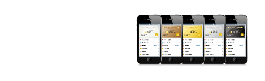 カードは[ホワイト][ブロンズ][ゴールド][プラチナ][ブラック]の5種類の会員ランクを設定可能。